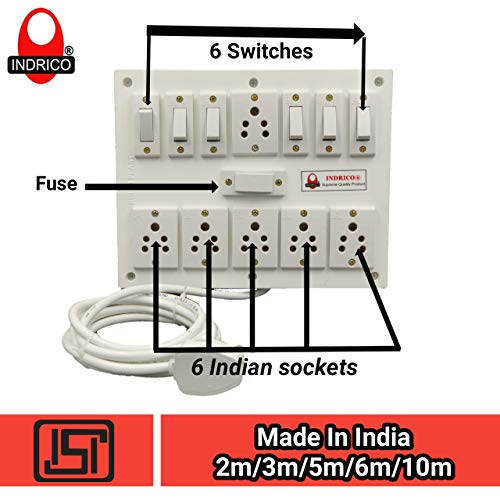 Indrico Extension Box 6 Sockets And 6 Switches Fuse With Heavy Duty Cable White 10 Meter Indrico